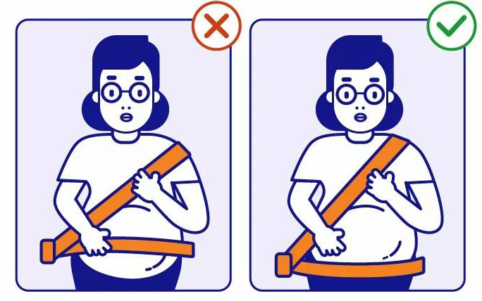 孕婦系安全帶時(shí)一定要避開(kāi)肚子。