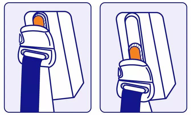 2、坐在車(chē)座上,一手拉出安全帶,另一只手握住卡扣處,將卡扣片與卡扣處卡緊,以確保安全帶牢牢的拴住身體。